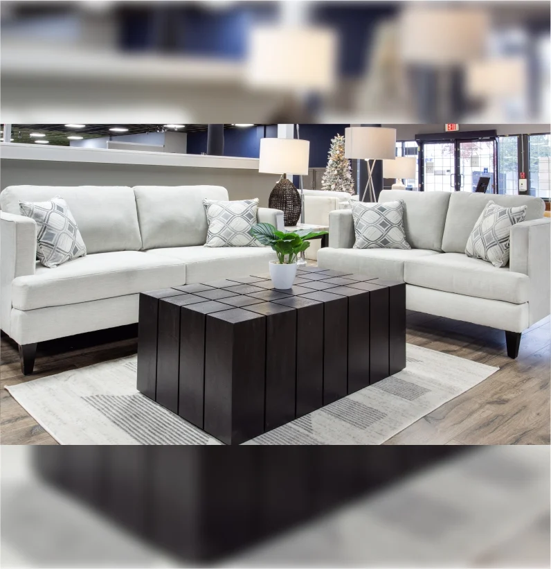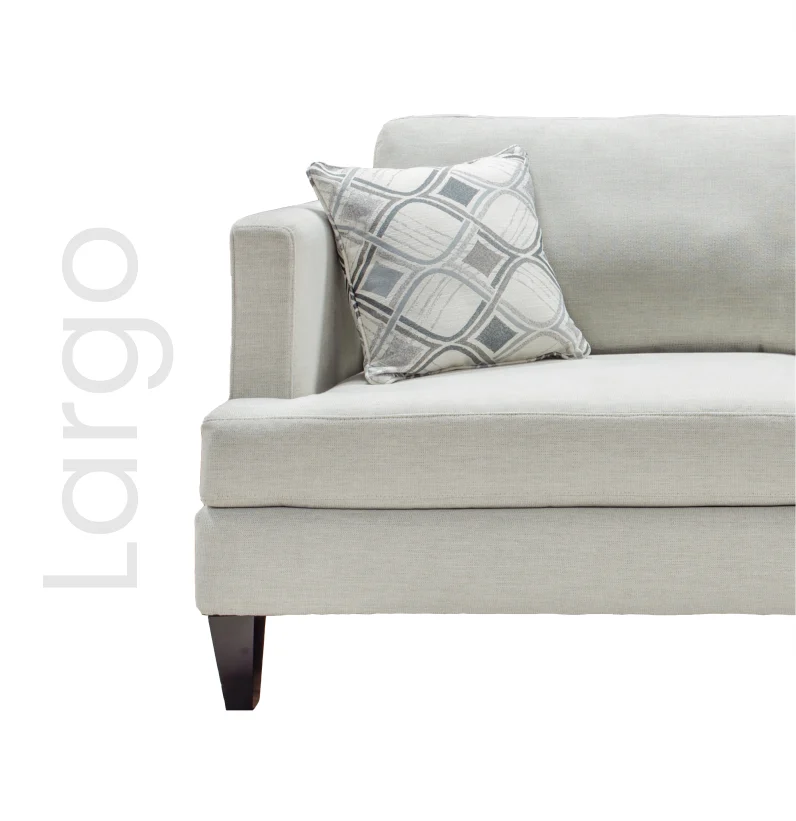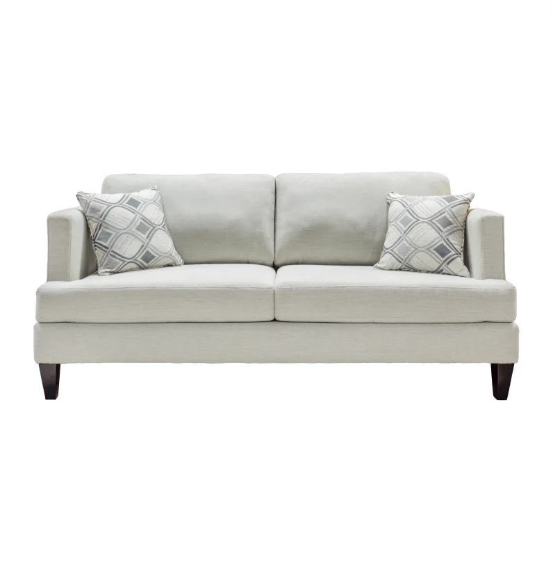 A perfect choice for any living room. A clean and comfortable design is perfect for relaxing after a long day. This soft silver fabric is easy to clean and looks great with the matching geometric throw pillows.