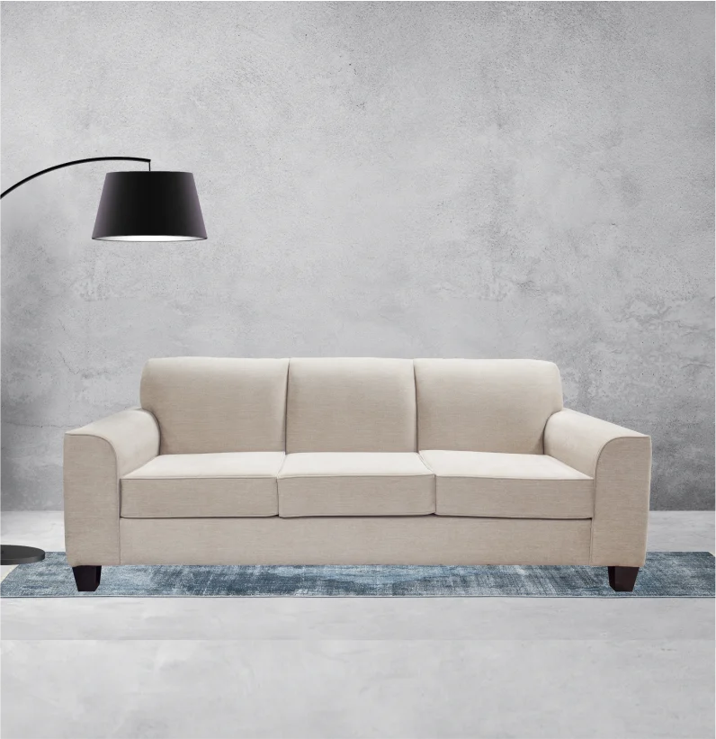 This sofa is a luxurious choice, upholstered in a rich teal velvet. The crystal-like buttons add a touch of sparkle, making it a perfect choice for a glamorous living room.